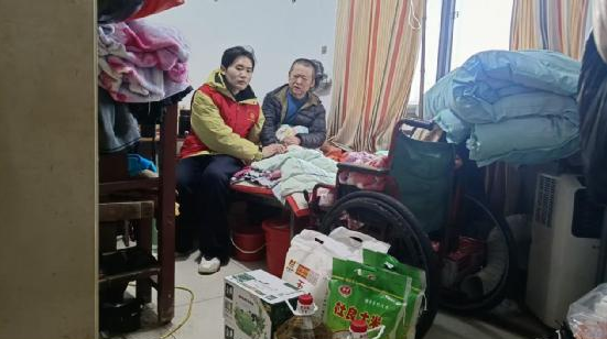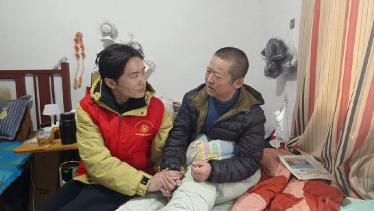 慰问现场,李佳宝与张立促膝长谈,俯身细致询问其近期身体恢复和日常起居情况,耐心倾听其生活难处,反复叮嘱他寒冬添衣保暖、安心休养。得知张立刚出院不久,李佳宝还贴心告知其弟弟,后续生活若有困难,可随时联系志愿服务队,团队会尽己所能提供帮扶。朴实的话语、贴心的关怀,让身处困境的张立倍感温暖,脸上露出欣慰的笑容。