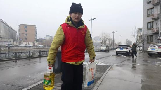 本网河南讯(通讯员 王光兴 王六勇)瑞雪映汴梁,温情暖寒冬。1月30日,寒意渐浓的开封城区飘起雪花,河南开封籍返乡大学生、河南杞县新时代文明实践中心365学雷锋志愿服务队志愿者李佳宝,带着用勤工俭学积蓄购置的大米、面粉、食用油和纯牛奶等生活物资,走进禹王台区新门关街道惠园社区,专程看望慰问下肢截瘫退役军人张立,以暖心行动践行雷锋精神,为困难群众送去冬日的温暖与新春的祝福。